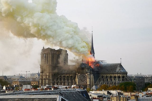 وشوهدت أعمدة الدخان وهي تتصاعد فوق سطح الكاتدرائية التي يعود تاريخها إلى العام 1345م، وذكر شهود عيان أن ألسنة اللهب وصلت إلى البرجين الذَين توجد بهما أجراس الكاتدرائية.