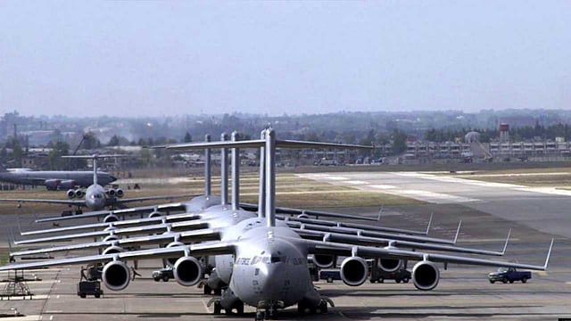 من جانبه، قال معهد ستوكهولم الدولي لأبحاث السلام (سيبري) إن الإنفاق الأمريكي يمثل 36% من إجمالي الإنفاق العسكري العالمي، ويساوي تقريبًا إنفاق الدول الثماني التالية لها مجتمعة؛ حيث تمت زيادة الجنود بنحو 16 ألف جندي وضخ 90 طائرة طراز f35 بجانب 20 غواصة.