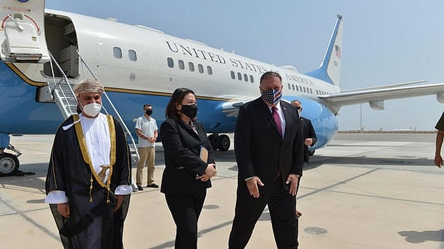 ووصل بومبيو إلى سلطنة عُمان، قادمًا من الإمارات في إطار جولة بالشرق الأوسط شملت السودان وإسرائيل، والبحرين.