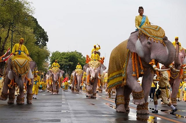 وللأفيال أهمية خاصة في تاريخ تايلاند وثقافتها، ولم تشارك الأفيال في الاحتفالات الرسمية بالتتويج.