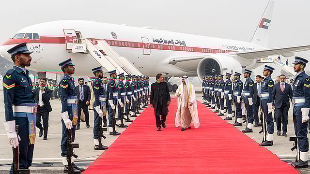 وأقيمت للشيخ محمد بن زايد مراسم استقبال رسمية، ثم رافقه «خان» لمقر رئيس الوزراء؛ حيث عُقد الاثنان جلسة مباحثات، وأوضحت «جيو» أن زيارة ولي عهد أبوظبي، تعكس متانة العلاقات بين باكستان ودولة الإمارات العربية المتحدة.