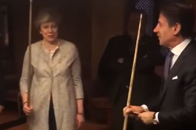 وأظهر مقطع فيديو نُشر عبر موقع التواصل الاجتماعي «يوتيوب»، رئيسة وزراء بريطانيا تيريزا ماي وهي تلعب «البلياردو» مع رئيس الوزراء الإيطالي جوزيبي كونتي بمدينة شرم الشيخ المصرية.