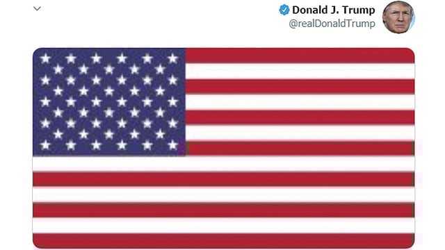 غرد الرئيس الأمريكي دونالد ترامب، بنشر العلم الأمريكي على حسابه على «تويتر» في أول رد فعل منه بعد مقتل قاسم سليماني قائد فيلق القدس التابع للحرس الثوري الإيراني في بغداد، في الهجوم الذي وقع في وقت سابق بالقرب من مطار بغداد الدولي.