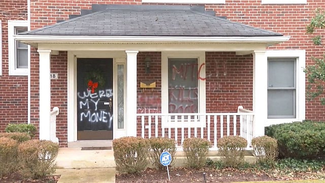 واستخدم مجهولون الألوان لكتابة عبارات مثل «أين أموال» و«ميتش قتل الفقراء» على منزل ماكونيل، في ضاحية لويزفيل. ولم تتحدث الشرطة عن أجرار جسيمة لحقت بالمنزل، ومن غير المعروف ما إذا كان ماكونيل وزوجته موجودين داخل المنزل وقت هذا الاعتداء.