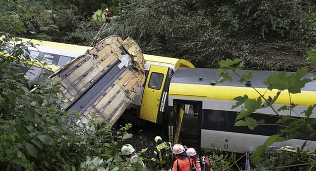 أعلنت الشرطة الألمانية مقتل أربعة أشخاص على الأقل إثر خروج قطار إقليمي يحمل نحو 100 راكب عن مساره في منطقة غابات في جنوب غرب البلاد الأحد..وأكد متحدث باسم الشرطة لوكالة فرانس برس مقتل أربعة أشخاص في الحادث، مضيفًا أن عدة أشخاص أصيبوا.