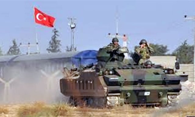 وكانت الدورية التركية، التى تم رشقها بالحجارة على بعد نحو سبعة كيلومترات إلى الشرق من مدينة كوباني الحدودية، وقال شاهد: إن مركبات مدرعة دخلت عبر فجوة في الجدار الحدودي إلى الجانب السوري واتجهت شرقًا، وذكرت مصادر أمنية أن الدورية ستغطي مسافة 72 كيلومترًا بعمق خمسة كيلومترات من الحدود، فيما بادرت حشود قرب كوباني من رشق المدرعات التركية بالحجارة من طريق سريع، وهي تردد الهتافات.