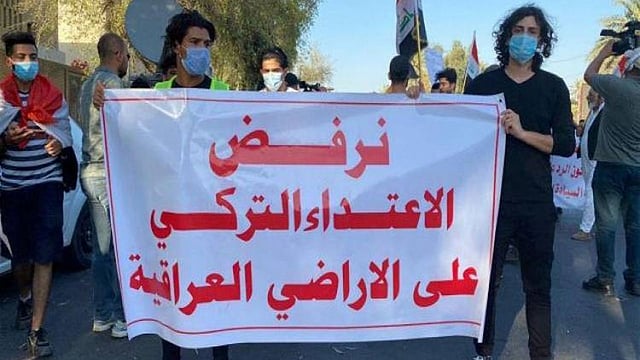 وذكرت أن الناشطين والمتظاهرين رفعوا لافتات تندد بالتدخل التركي شمال العراق.