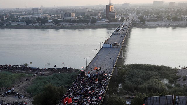في تطور جديد للأحداث بشكل لافت في العراق، سيطر المتظاهرون على جسر محمد القاسم في العاصمة بغداد، التي شهدت في وقت سابق اشتباكات بين عدد من المحتجين وقوى الأمن.