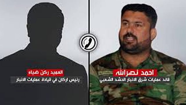 كشفت مكالمة تليفونية مسربة بين أحمد نصر الله، قائد عمليات الحشد الشعبي- شرق الأنبار العراقية، ورئيس أركان قيادة العمليات العميد الركن "ضياء"، عن تهديدات بقطع يد قائد العمليات هناك، فيما أصدر رئيس الوزراء مصطفى الكاظمي أمرًا بالتحقيق الفوري في الواقعة.
