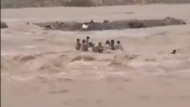 وظهر خلال مقطع الفيديو، الذي نشره حساب "العربية-سلطنة عمان" على "تويتر"، مجموعة من المواطنين تحاصرهم المياه من كل اتجاه، فيما يحاولون السير في مجموعة واحدة لأحد أطراف الوادي قبل أن تجرفهم المياه بعيدًا.