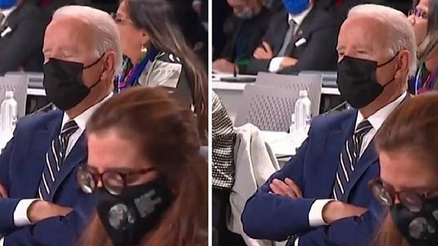التقطت عدسات الكاميرات بقمة المناخ المنعقدة في مدينة غلاسكو الاسكتلندية مقطع طريف للرئيس الأمريكي، جو بايدن، يبدو فيه نائمًا خلال فعاليات القمة، التي انطلقت، اليوم الاثنين.
