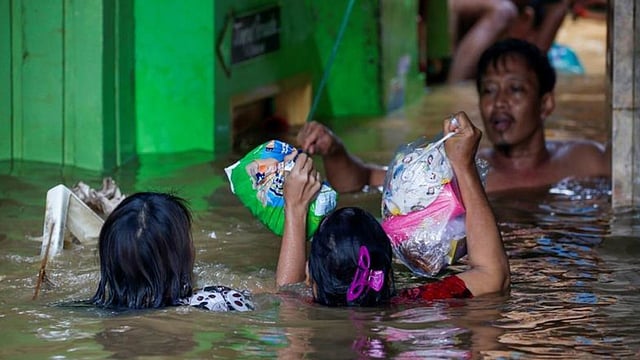 وبدأت المياه تغمر أجزاءً من جاكرتا والمناطق المجاورة يوم الأربعاء بعد 18 ساعة من هطول أمطار غزيرة غمرت مياهها المنازل وجرفت السيارات.