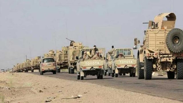 وأشار إلى أن مدفعية الجيش الوطني ومقاتلات التحالف استهدفتا تجمعات وتعزيزات للميليشيات الانقلابية في منطقة المداوير وغرب مفرق قطبين، سقط على إثرها قتلى وجرحى من الميليشيات، ودُمِّر طقمان ومدرعة.