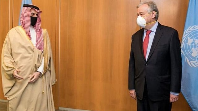 وجرى خلال اللقاء استعراض أوجه التعاون بين المملكة العربية السعودية والأمم المتحدة، بالإضافة إلى مناقشة آخر المستجدات والتطورات في فلسطين المحتلة، والجهود الحثيثة لتعزيز الأمن والسلم الدوليين.