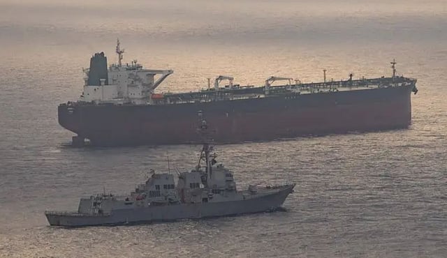 ونشرت سنتكوم في تغريدة على إكس اليوم السبت صورة للمدمرة تحاصر الموانئ الإيرانية.