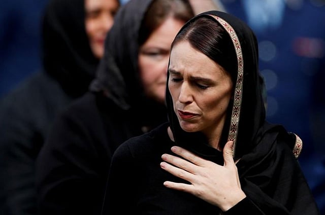 ونشرت وسائل الإعلام في مختلف أنحاء العالم صور رئيسة الوزراء النيوزيلندية مرتدية حجابًا أسودًا لدى زيارتها لأسر الضحايا بعد يوم من الهجوم.