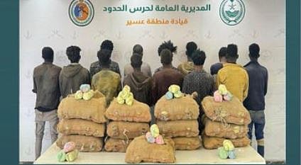 القبض على 13 إثيوبيا لتهريبهم القات وإحباط تهريب 33 كيلوجرامًا من الحشيش بمنطقة عسير
