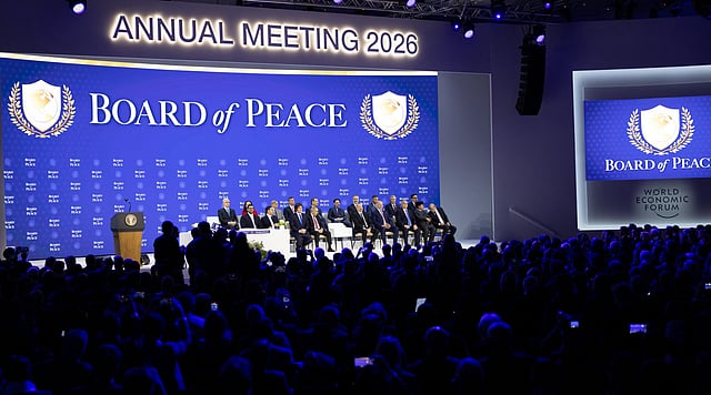 وقع الأمير فيصل بن فرحان بن عبدالله وزير الخارجية، اليوم، على ميثاق تأسيس مجلس السلام، بحضور الرئيس دونالد ترامب رئيس الولايات المتحدة الأمريكية، وقادة وممثلي عددٍ من الدول المرحبة بإنشاء المجلس، وذلك خلال حفل توقيع إطلاق المجلس على هامش الاجتماع السنوي للمنتدى الاقتصادي العالمي 2026، في مدينة دافوس السويسرية.
