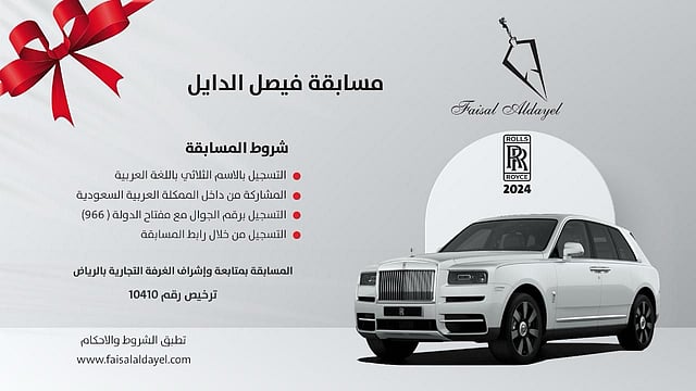 أعلنت عطور فيصل الدايل، العلامة التجارية السعودية المميزة، عن مسابقة جديدة للفوز بجيب روز كولينن 2024 البالغ قيمتها ثلاثة ملايين ريال سعودي دون أي شرط للشراء!