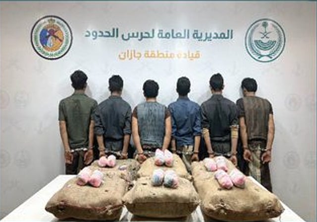 قبضت الدوريات البرية لحرس الحدود في قطاع الدائر بمنطقة جازان على (6) مخالفين لنظام أمن الحدود من الجنسية اليمنية، لتهريبهم (120) كيلوجرامًا من نبات القات.