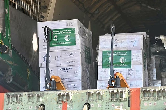 وتحمل على متنها المساعدات الإغاثية التي تشتمل على المواد الغذائية والإيوائية والطبية؛ وذلك إنفاذًا لتوجيهات خادم الحرمين الشريفين الملك سلمان بن عبدالعزيز آل سعود، وصاحب السمو الملكي الأمير محمد بن سلمان بن عبدالعزيز آل سعود، ولي العهد رئيس مجلس الوزراء ـ حفظهما الله ـ .
