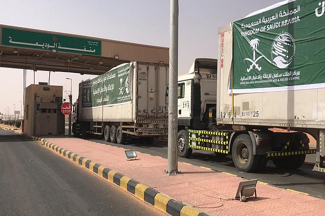 عبرت منفذ الوديعة الحدودي، ثلاث شاحنات إغاثية كبيرة تحمل 900 سلة غذائية، تزن 66 طنًا و600 كيلوجرام، مقدمة من مركز الملك سلمان للإغاثة والأعمال الإنسانية، تستهدف محافظة الحديدة.