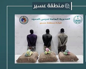 أعلنت الدوريات البرية لحرس الحدود في قطاع الربوعة بمنطقة عسير القبض على (3) مخالفين لنظام أمن الحدود من الجنسية الإثيوبية، لتهريبهم (45) كيلوجراما من نبات القات المخدر.