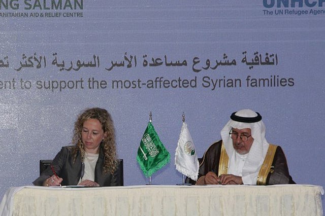 وقَّعت السعودية، اليوم الأربعاء، مع مفوضية الأمم المتحدة لشؤون اللاجئين في بيروت، اتفاقية بقيمة خمسة ملايين دولار أمريكي لتقديم مساعدات نقدية للاجئين السوريين الأكثر ضعفًا في لبنان.