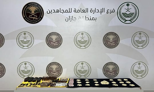 أعلنت دوريات الإدارة العامة للمجاهدين بمنطقة جازان إحباط تهريب (3636) قرصا من مادة الإمفيتامين المخدرة وأقراص خاضعة لتنظيم التداول الطبي و(1.9) كيلوجرام من مادة الحشيش المخدر.
