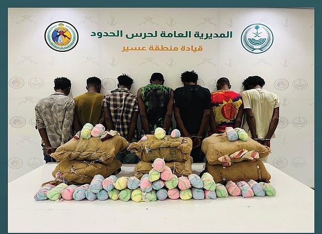 قبضت الدوريات البرية لحرس الحدود في قطاع الربوعة بمنطقة عسير على (7) مخالفين لنظام أمن الحدود من الجنسية الإثيوبية، لتهريبهم (161) كيلوجرامًا من نبات القات المخدر، وجرى استكمال الإجراءات النظامية الأولية بحقهم، وتسليمهم والمضبوطات لجهة الاختصاص.