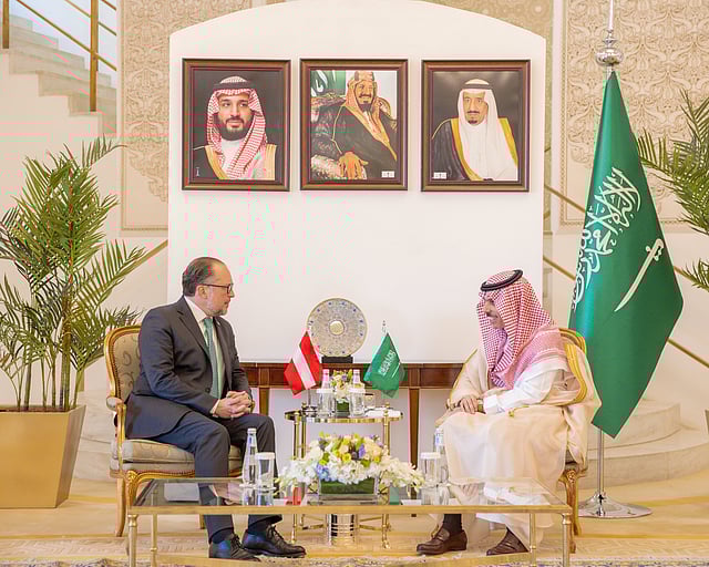 واستعرض الجانبان أوجه العلاقات بين المملكة والنمسا، وسبل دعمها وتعزيزها بما يخدم مصالح البلدين والشعبين الصديقين، إضافة إلى تبادل وجهات النظر حيال القضايا الإقليمية والدولية.