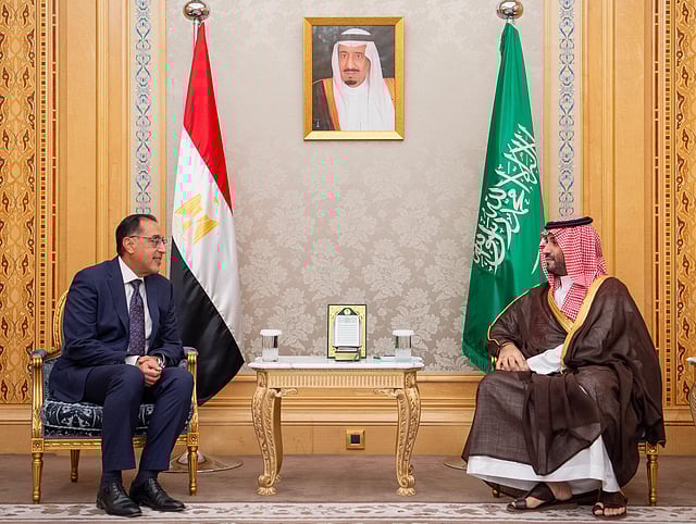 التقى صاحب السمو الملكي الأمير محمد بن سلمان بن عبدالعزيز آل سعود ولي العهد رئيس مجلس الوزراء - حفظه الله -، رئيس الوزراء بجمهورية مصر العربية واستعرضا العلاقات الثنائية بين البلدين الشقيقين، وآفاق التعاون المشترك وسبل تعزيزه وتطويره بما يحقق المصالح المشتركة للبلدين والشعبين الشقيقين.