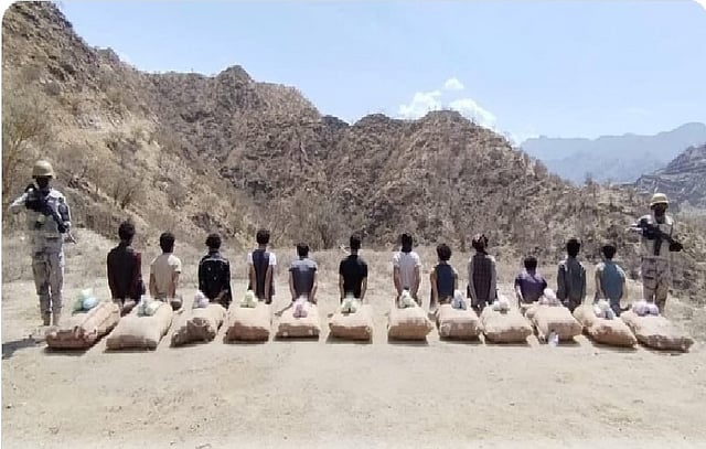 قبضت الدوريات البرية لحرس الحدود في قطاع العارضة بمنطقة جازان على (12) مخالفًا لنظام أمن الحدود من الجنسية اليمنية، لتهريبهم (206) كيلوجرامات من نبات القات المخدر، واستكملت الإجراءات النظامية الأولية بحقهم، وسُلّموا والمضبوطات لجهة الاختصاص.