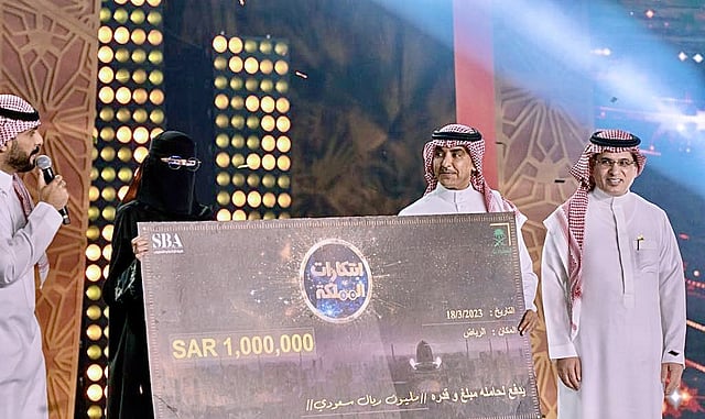 وكرّم كل من وزير الإعلام سلمان الدوسري ورئيس هيئة الإذاعة والتلفزيون محمد فهد الحارثي الفائزة في برنامج ابتكارات المملكة نورة الموسى بجائزة المليون ريال.