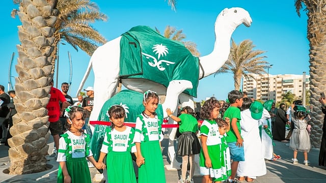 قطعت مجموعة من الإبل مسافة بمحاذاة البحر الأحمر في ممشى الألوان وسط مدينة جدة، في أجواء احتفالية تزيَّنت بألوان الوطن والمعزوفات الشعبية والأزياء التقليدية.