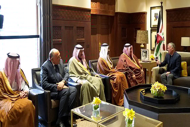 جاء ذلك خلال استقباله في قصر الحسينية، وزير الدولة للشؤون الخارجية بالسعودية عادل الجبير، وزير الخارجية الكويتي الشيخ صباح خالد الحمد الصباح، ووزير الخارجية والتعاون الدولي بالإمارات الشيخ عبدالله بن زايد آل نهيان، ووزير خارجية البحرين الشيخ خالد بن أحمد آل خليفة، ووزير خارجية مصر سامح شكري، إضافة إلى وزير الخارجية الأردني أيمن الصفدي، بحسب وكالة الأنباء الأردنية «بترا».
