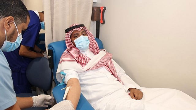 دشن مساعد وزير الموارد البشرية والتنمية الاجتماعية المهندس محمد ناصر الجاسر، خلال زيارته فرع الوزارة بمنطقة الحدود الشمالية، حملة التبرع بالدم.