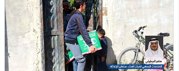 قال متحدث مركز الملك سلمان للإغاثة سامر الجطيلي، إن تكلفة المساعدات الإجمالية المقدمة من المركز إلى قطاع غزة، بلغت حتى الآن نحو 350 مليون ريال.