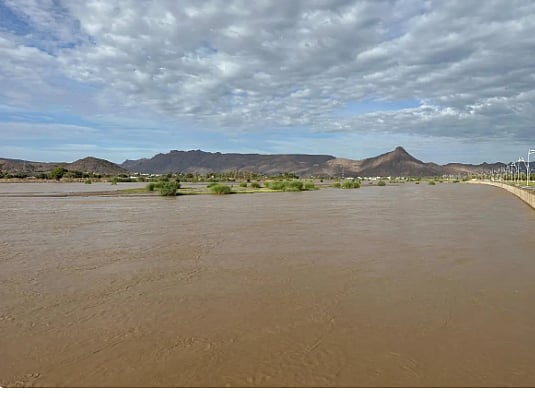 سيول وادي نجران تواصل الجريان منذ عدة أيام