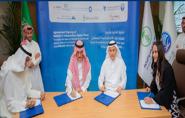 وقّع وزير البيئة والمياه والزراعة، رئيس مجلس المديرين للشركة السعودية لشراكات المياه، المهندس عبد الرحمن بن عبد المحسن الفضلي بمقر الوزارة اليوم، اتفاقيات إنشاء مشروع محطة «رابغ 4» لإنتاج المياه المستقلة بمحافظة رابغ، بسعة إنتاجية تبلغ 600 ألف متر مكعب من المياه المحلاة يوميًّا.
