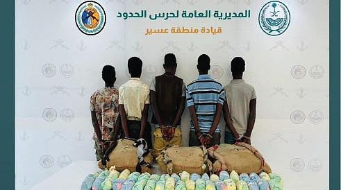 القبض على 5 مخالفين إثيوبيين لتهريبهم 84 كجم من القات بعسير
