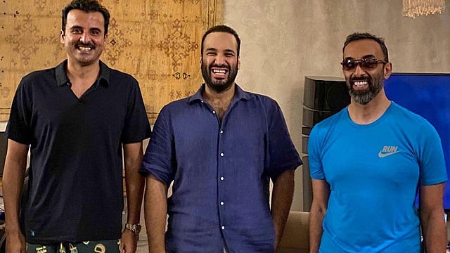 التقى صاحب السمو الملكي الأمير محمد بن سلمان ولي العهد نائب رئيس مجلس الوزراء وزير الدفاع، الجمعة، أمير دولة قطر الشيخ تميم بن حمد، ومستشار الأمن الوطني في الإمارات الشيخ طحنون بن زايد.