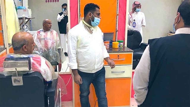 بالصور.. إغلاق 8 محلات وتوقيع تعهُّد على 68 صالون حلاقة بتبوك