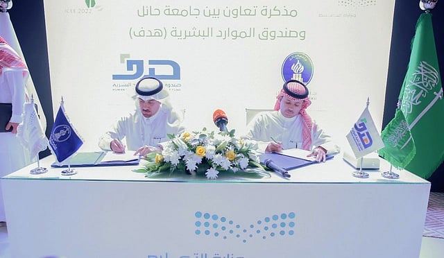 أبرم صندوق تنمية الموارد البشرية (هدف) وجامعة حائل مذكرة تعاون، لدعم تدريب وتأهيل وتوظيف طلبة الجامعة وضمان مواءمة مهاراتهم وكفاءاتهم المهنية للاحتياجات الفعلية لسوق العمل، من خلال الاستفادة من برامج وممكنات الصندوق في التوجيه والإرشاد المهني (سُبل) وبرنامج التدريب على رأس العمل (تمهير) والمنصة الوطنية للتدريب الإلكتروني «دروب»، بالإضافة إلى إتاحة بيانات الجامعة للمرصد الوطني للعمل لمعالجتها وربطها مع بيانات سوق العمل.