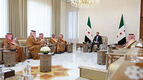 استقبل الرئيس السوري أحمد الشرع وفداً من رجال الأعمال في السعودية، برئاسة كل من محمد أبو نيان وسليمان المهيدب، وذلك في قصر الشعب بدمشق.