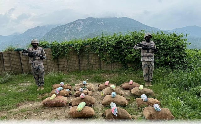 أحبطت الدوريات البرية لحرس الحدود في قطاع العارضة بمنطقة جازان تهريب (298) كيلوجرامًا من نبات القات المخدر.