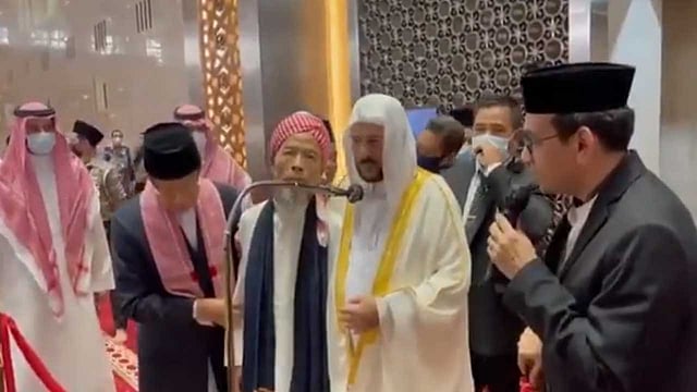 في مشهد مؤثر، انهمر مسن إندونيسي في البكاء من الفرح وسط تكبيرات 100 ألف مصل بجامع الاستقلال بإندونيسيا بعدما اختاره وزير الشؤون الإسلامية، الدكتور عبداللطيف آل الشيخ، للحج هو وزوجته على نفقة المملكة.