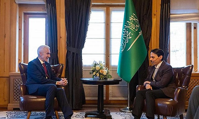 حضر اللقاء، سفير خادم الحرمين الشريفين لدى الاتحاد السويسري الدكتور عادل مرداد، ومدير عام مكتب وزير الخارجية عبدالرحمن الداود.