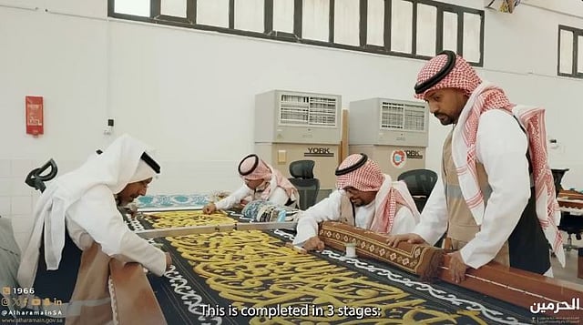 بأيادٍ سعودية احترفت ونسجت الجمال على كسوة الكعبة المشرفة بخيوط الحرير والفضة والذهب، يعمل عدد من الشباب السعودي المفعم بالحيوية على صناعة كسوة الكعبة المشرفة عبر 7 مراحل.