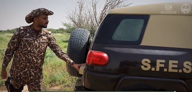 تمكنت الدوريات الميدانية للقوات الخاصة للأمن البيئي وهي تؤدي مهامها في تنفيذ نظام البيئة بمنطقة المدينة المنورة من القبض على مواطنين وهما: راكان حمدان الوافي، وأحمد حامد الوافي، لارتكابهما مخالفة الصيد دون ترخيص, بحوزتهما بندقية نارية، و(6) ذخائر ناريّة حيّة، وجرى ايقافهما اتخاذ الإجراءات النظامية بحقهما، وإحالتهما إلى الجهة المختصة.
